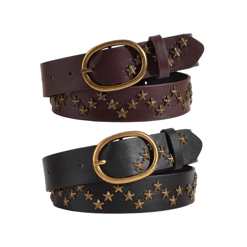 Punk Style Waistband Star Studded Pu Leather Belt Korean Version Jeans Sash Fashionable Decorative Pants Belt
