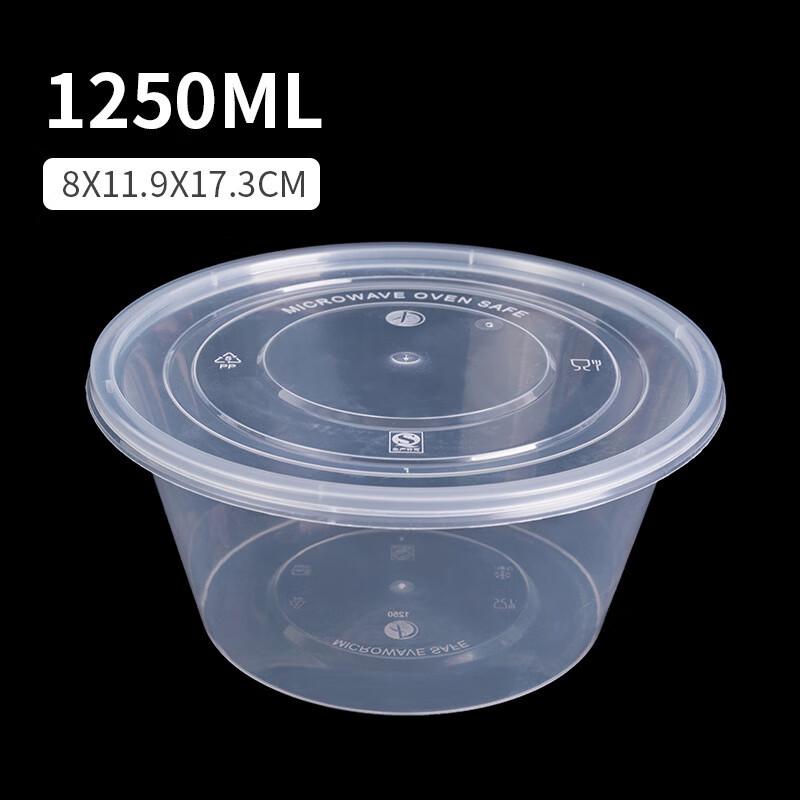 Zebian Disposable Round Plastic Food Containers with Lids, 1250ml