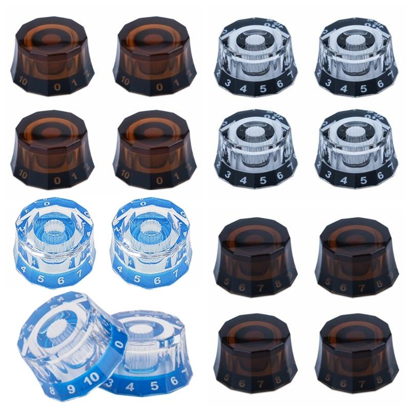 4Pcs Guitar Contral Knobs, Clear Knobs Electric Guitar Bass Top Hat Knobs Speed Volumes Tone Control Knobs Replacement
