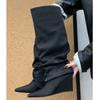 New Winter Design Pleated Splicing Knee High Boots Women Pointed Toe Wedges Heels Shoes De Mujer