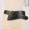 PU Leather Female Waist Belt with Irregular Buckle Rivets Decors PU Waist Belt Hollowed out Waistband for Coat Shirt