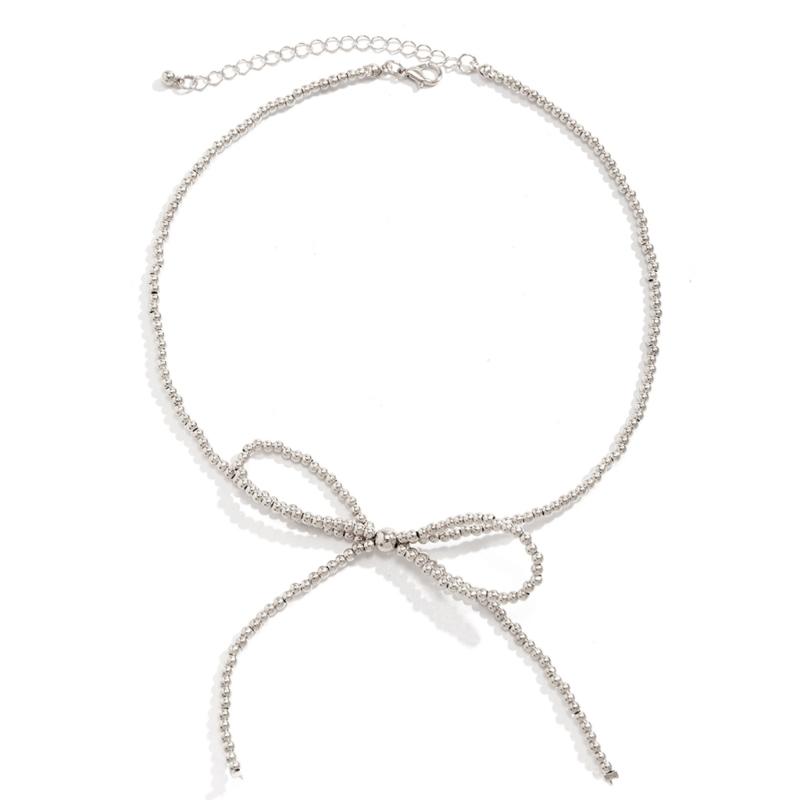 Trendy Bowknot Studs Earrings Stylish Chain Choker Necklace Durable Beads Bracelet Alloy Material Jewelry Gift for Women