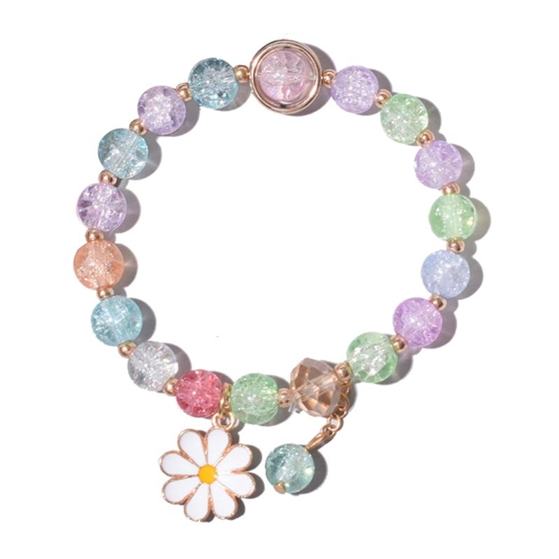 Elegant Crystal Flower Beaded Bracelet for Women Strand Beaded Bracelet Jewelry Strawberry Daisy Flower Wristband Chain