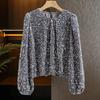 Tricou de damă cu mânecă lungă, cu paiete, design de toamnă, cu gât rotund, top elegant de bază