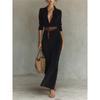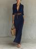 Women's Autumn Long Sleeve High Waist Ruched Dress with Belt