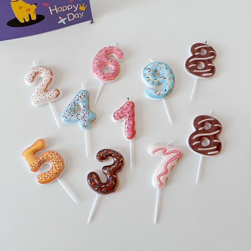 Cute 0-9 Number Candles for Kids Girl Birthday Cake Donut Decor Digital Candle Cake Topper Wedding Anniversary Party Decor