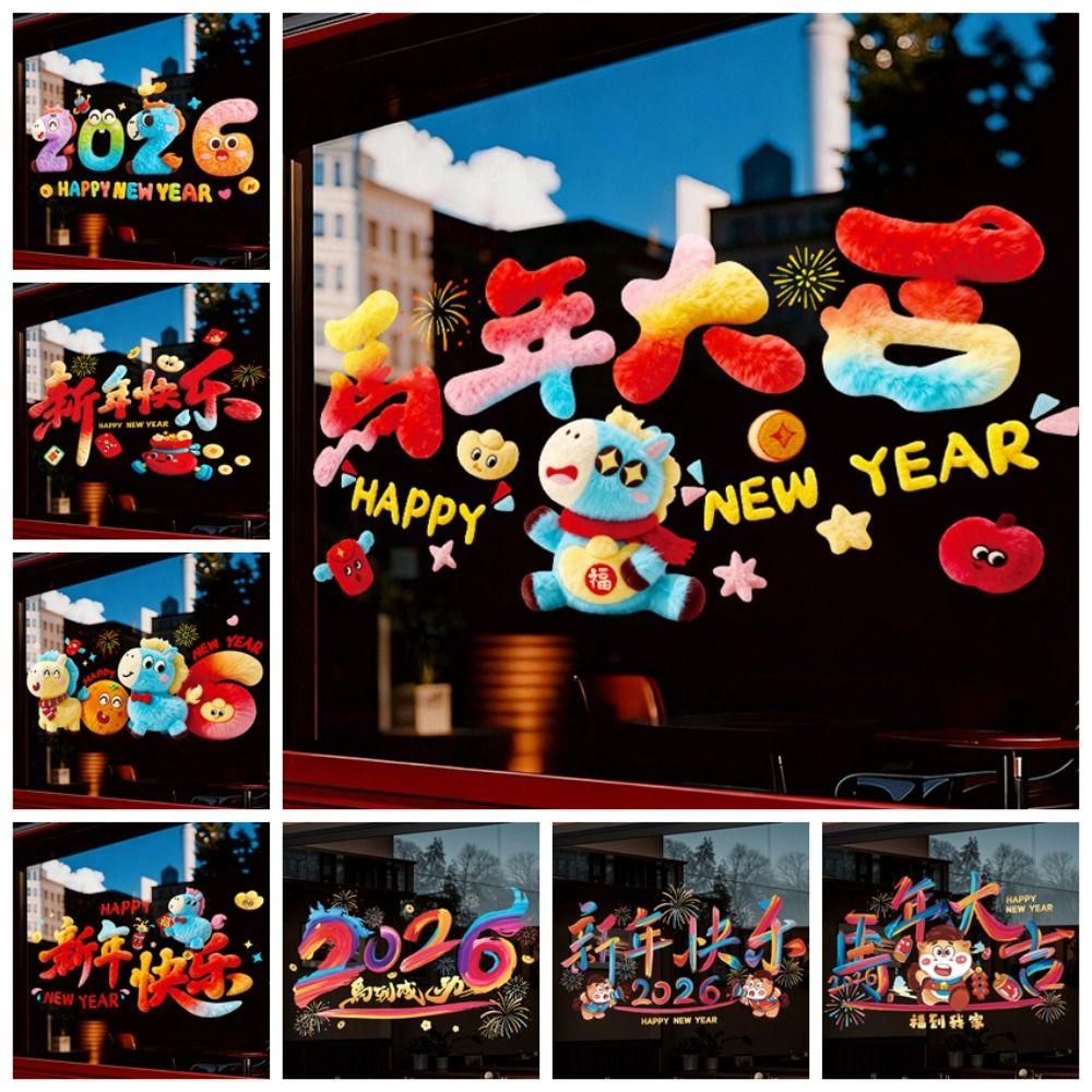 5D Glass Electrostatic Film Colorful 2026 Horse Year Stickers Window Glass Decor Living Room