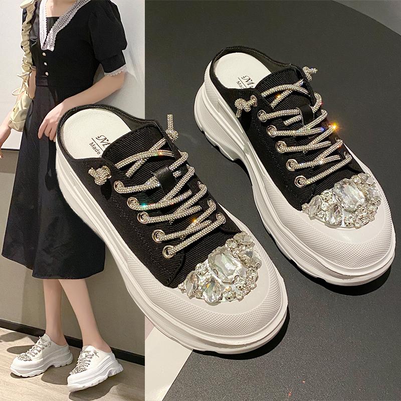 Women Shiny Rhinestones Shoes Four Seasons Casual Sneakers Women Stylish Sport Shoes Lace-Up Sports slippers mujer
