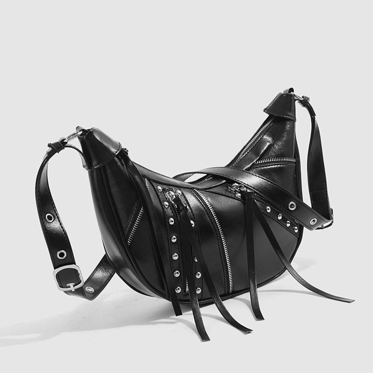 2024 New Fashion Oil Wax Leather Horn Bag Motorcycle Crossbody Bag for Women Niche Design Lazy Dumpling Single Shoulder Underarm Bag