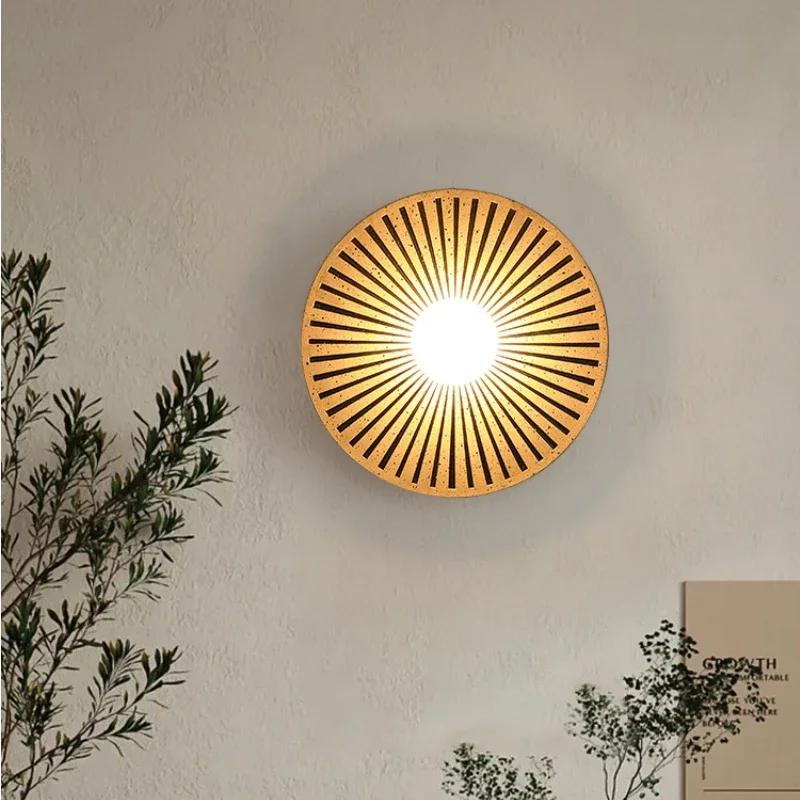 Retro Round Solid Wood Circular Wall Lamp Modern Homestay Vintage LED Lighting Unique Artistic Decoration Wall Sconce