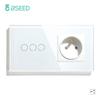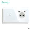BSEED 1/2/3Gang Touch Light Switches 1/2/3Way Pass Through For Stair Plus French Standard Wall Sockets USB Type-c Charging Ports