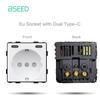 Comutator jaluzele WiFi BSEED și întrerupătoare de lumină cu 1/2/3 circuite Tip EU/Francez Funcție priză USB de tip C Piese DIY Panou frontal din sticlă