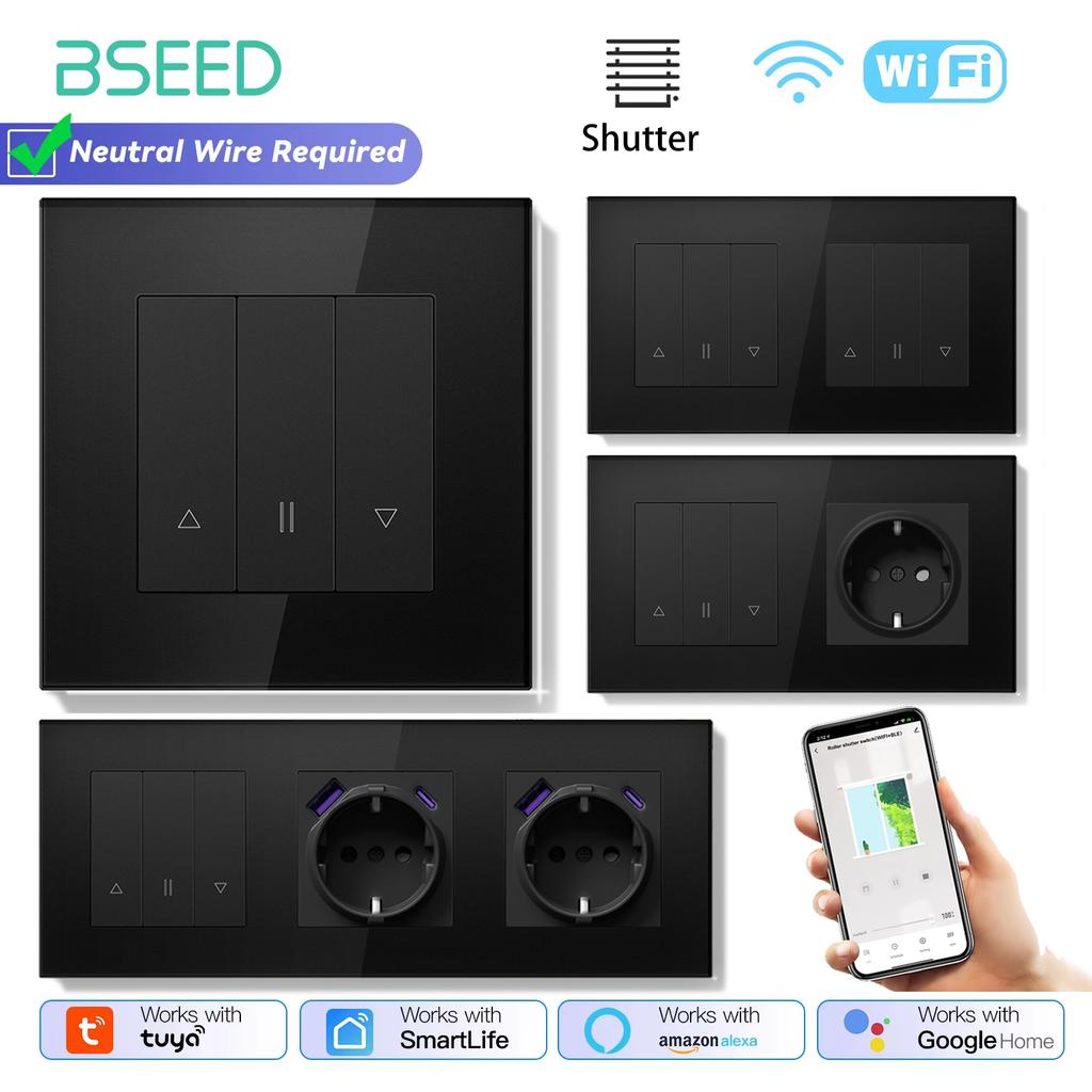 Comutatoare Smart BSEED Wifi pentru Jaluzele Luminoase Controller Jaluzele Suport Aplicație Smart Tuya Plus Prize Electrice Normale UE Panouri de Sticlă USBC