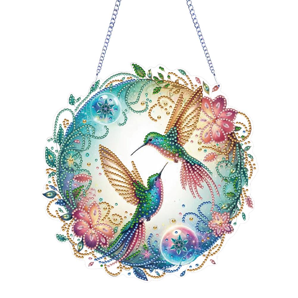 2D Flat Hummingbird DIY Rhinestone Diamond Art Window Pendants Special Shape Diamond Art Pendant Wall Decor for Home & Windows