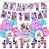 Demon Hunters Group Birthday Party Decorations Rumi Mira Zoey Anime Hanging Banner Balloons Cake Topper Decor Party Accessories