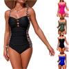 Women Bikini Navy Floral Deep V-neck Halter One-Piece Sexy Backless Lace Up Beach Bathing Swimwear KTB