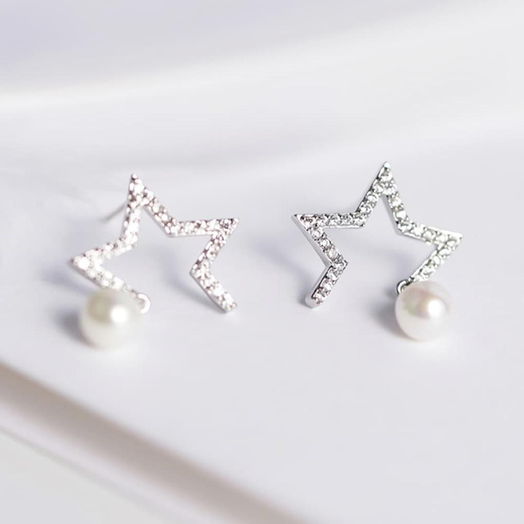 925 Silver Freshwater Pearl Earrings Pearl Pendant Point Star
