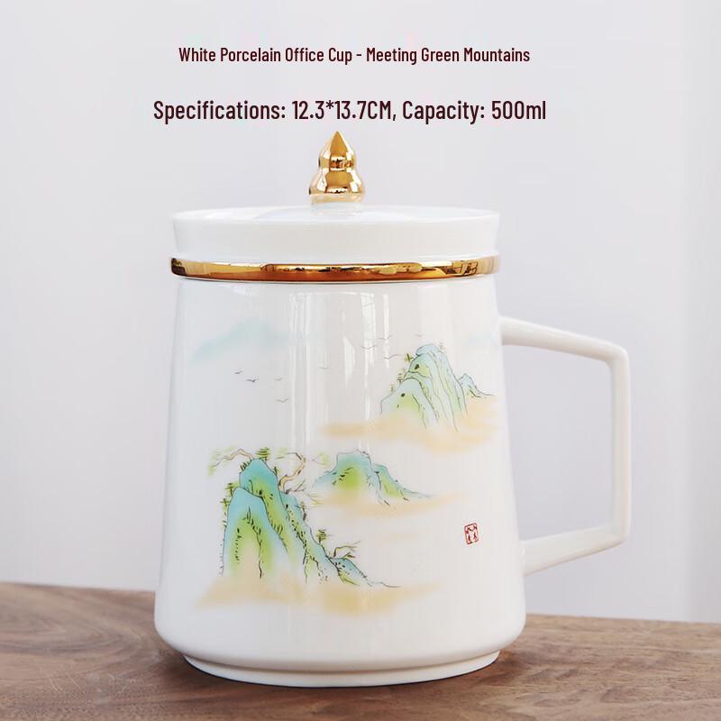 Chaxun White Porcelain Office Tea Mug with Lid and Infuser