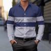 2025 Men's 3D Printed Contrast Color Lapel Design Formal Shirt Long Sleeve Casual Button-Down Shirt