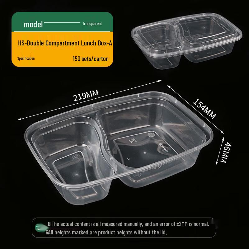 Disposable 2-Compartment Plastic Takeaway Containers with Lids