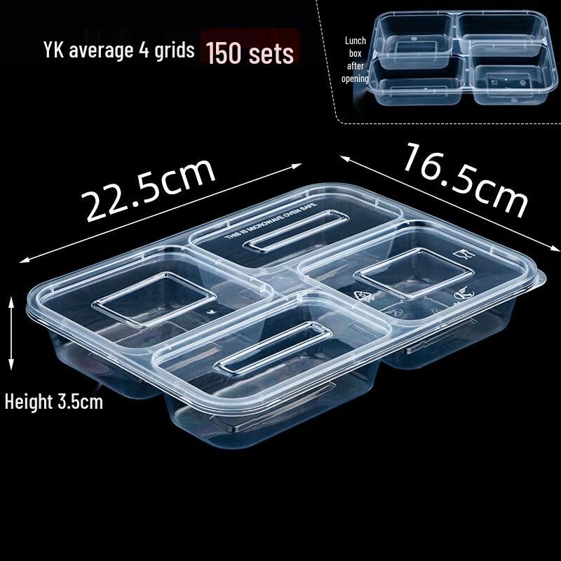 MOLUONA 800ml Disposable 4-Compartment Lunch Boxes with Lids (150 Sets)
