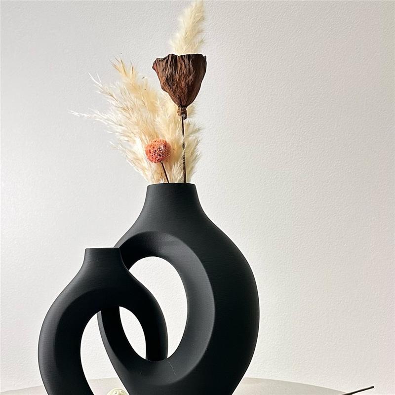 Hug Nordic Style Flower Arrangement 2-Piece White Vase Simple Flower Ornament Set High-End Design