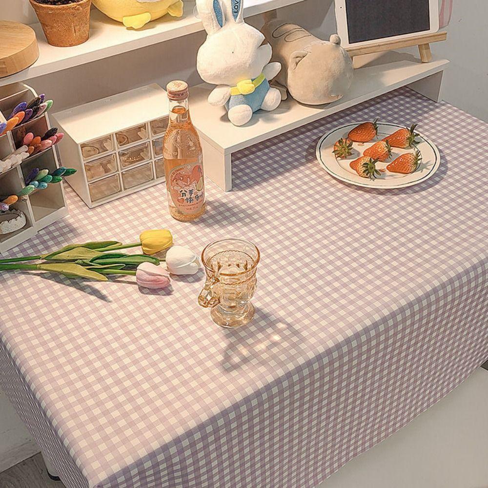Dust-proof Plaid Tablecloth 120x120cm Rectangular Ins Table Cloth Stain Resistant Washable Dining Table Protector Café Table
