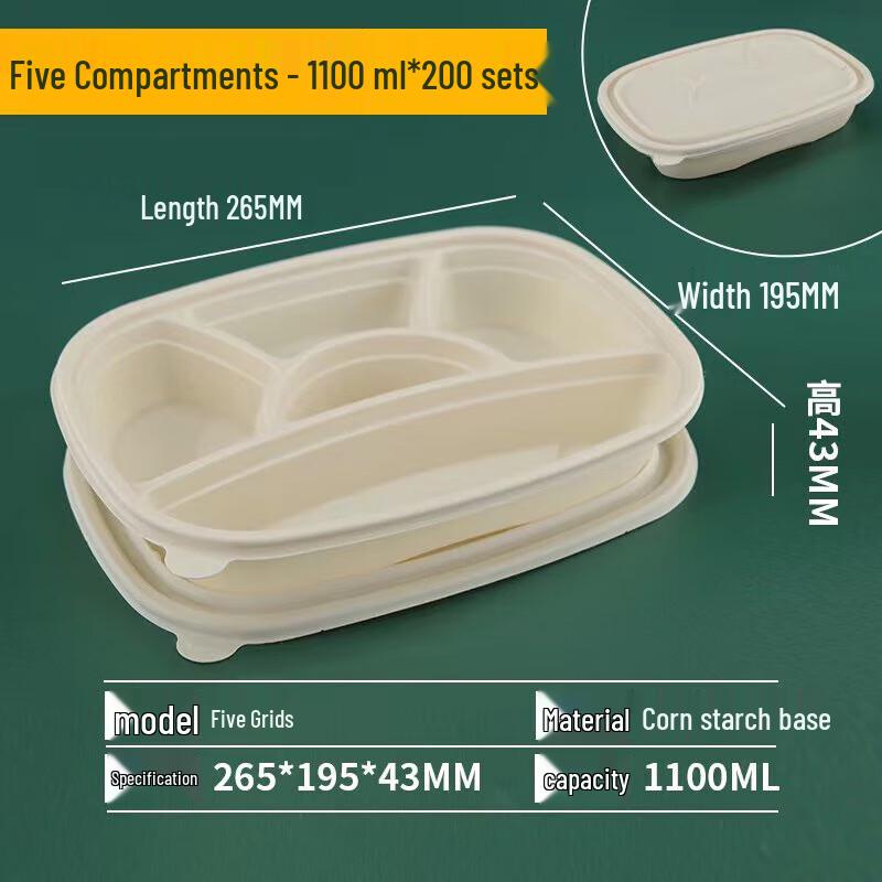 Biodegradable 5-Compartment Disposable Lunch Boxes with Lids