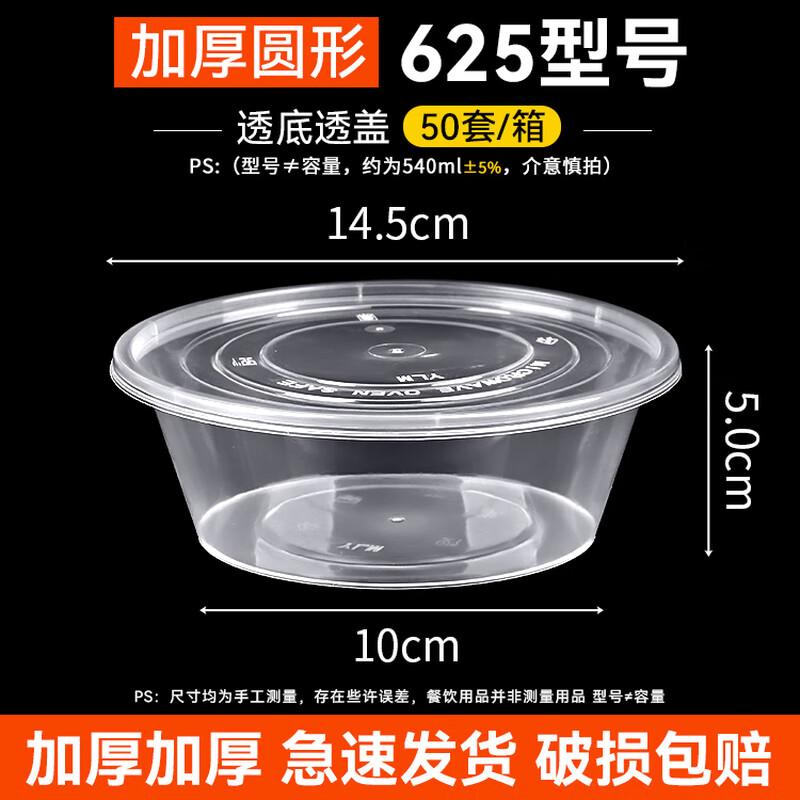 Food Grade Round Plastic Disposable Takeout Containers (50 Sets)