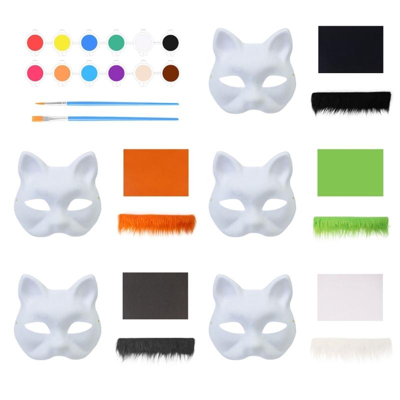 Unpainted Foxes Mask Masquerade Mask Anime Cosplay Mask Hand-Painted Cats Mask with Furs Half Face Mask for Halloween