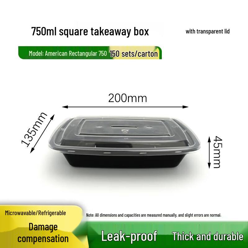 Disposable 750ml Rectangular Takeaway Food Containers with Lids