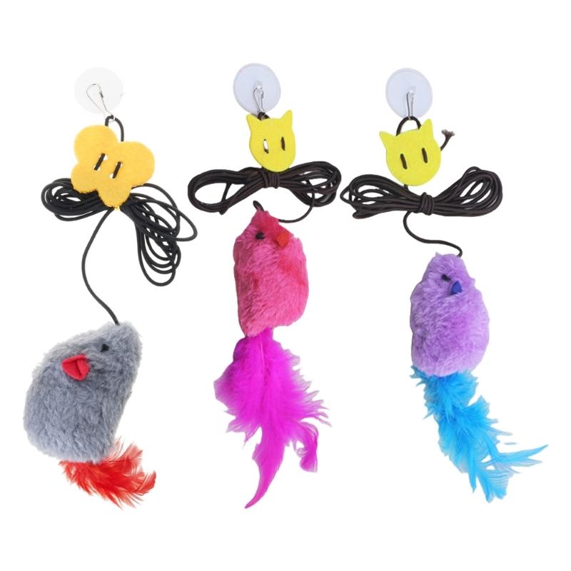 Interaction Cats Toy Mouse with Feathered Tail Elastic Door Frame Hanging Teaser Toy for Cats Entertainment Toy 2PCS