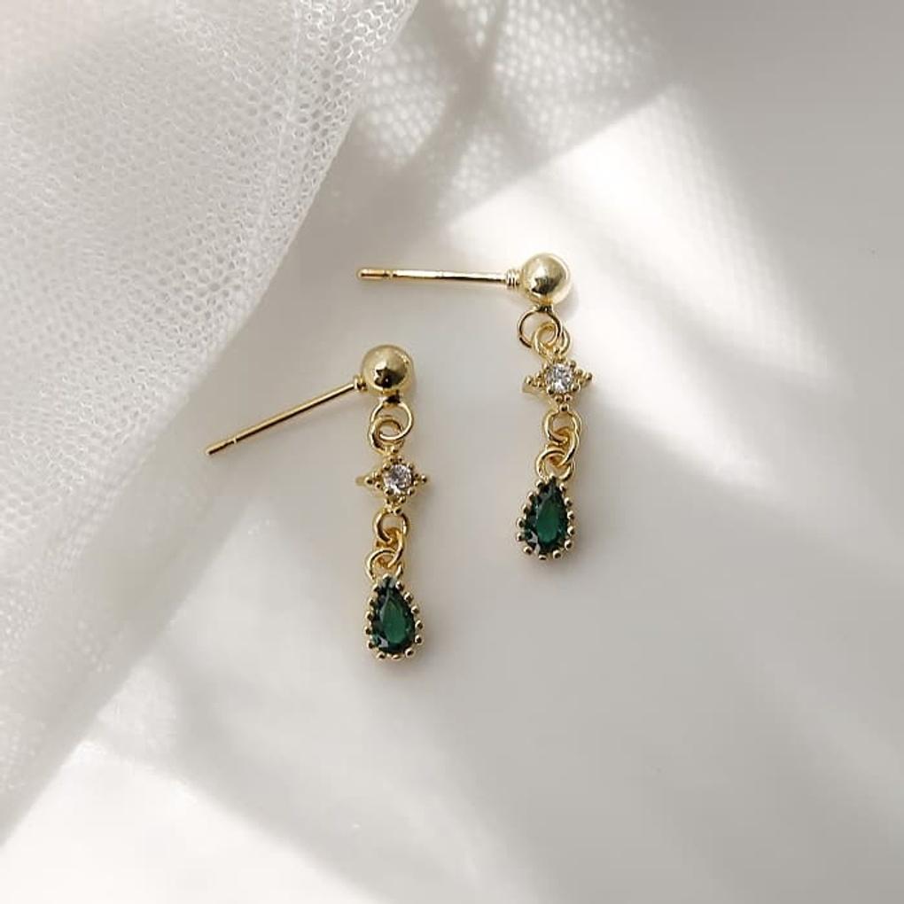 925 Silver Earrings Daily Green Waterdrop Cubic