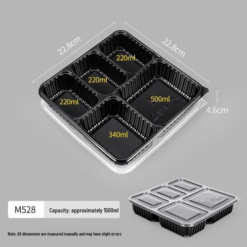 HANDUNYOU 1500ml Disposable 5-Compartment Lunch Box with Lid