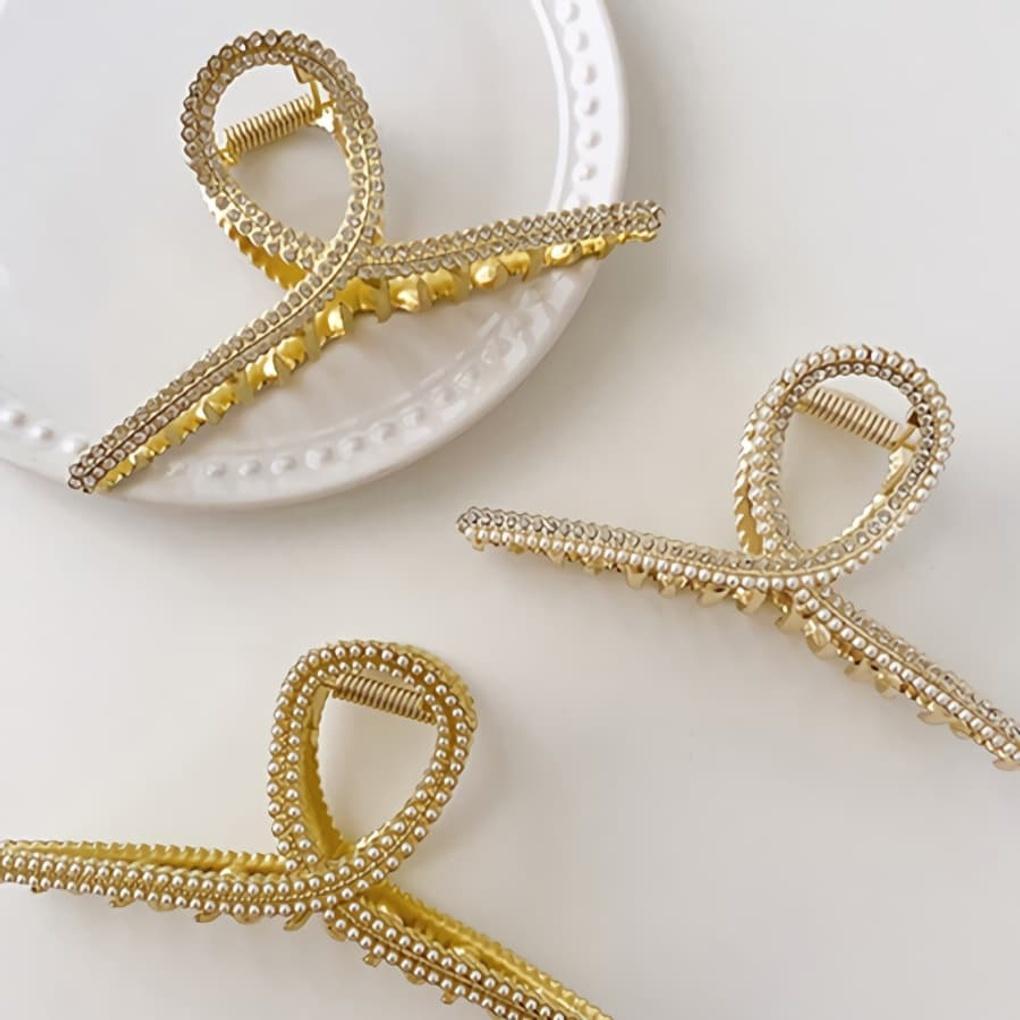 Women's Curved Pearl Cubic Straight Hair Clip Hairpin