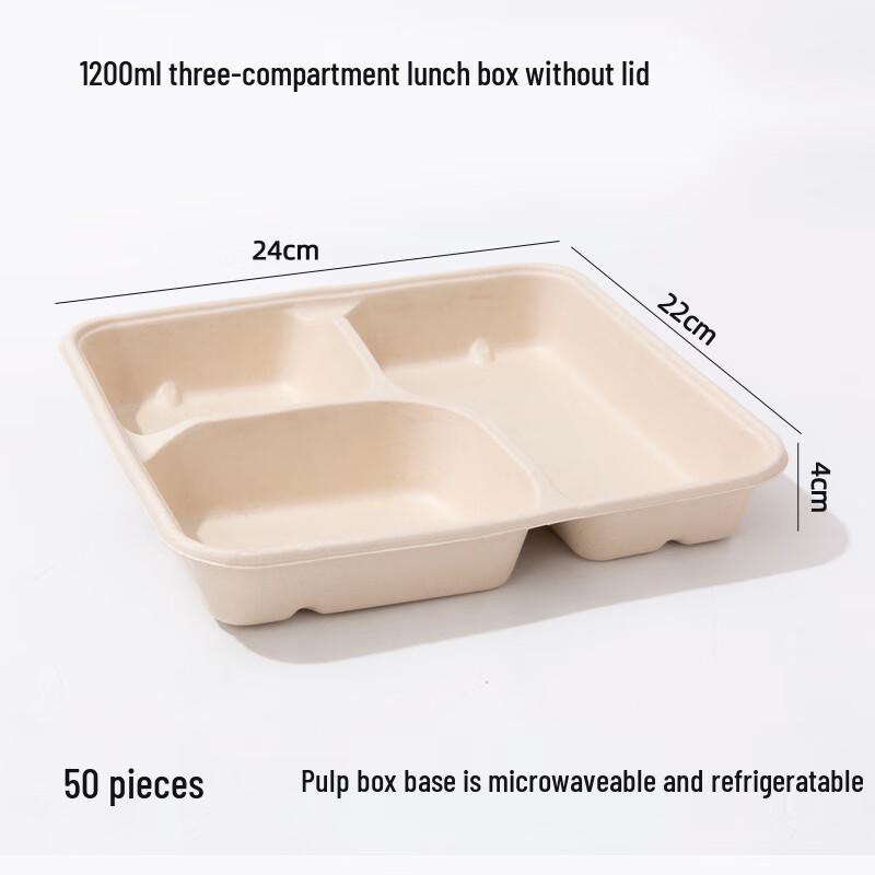 MOLUONA Disposable 3-Compartment Pulp Food Containers