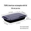 Ronghe 750ml Black Rectangular Disposable PP Lunch Box