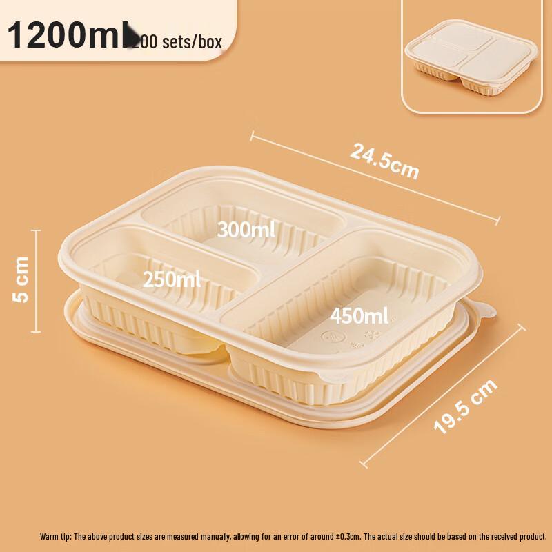 SHAN HE MEI Biodegradable 3-Compartment Disposable Meal Prep Containers