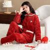 Coral fleece padded pajamas women's suit three-layer thickened can be worn outside autumn and winter loungewear winter fleece warm