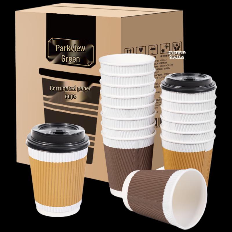 Fang Cao Di 280ml Disposable 3-Layer Corrugated Coffee Cups with Lids