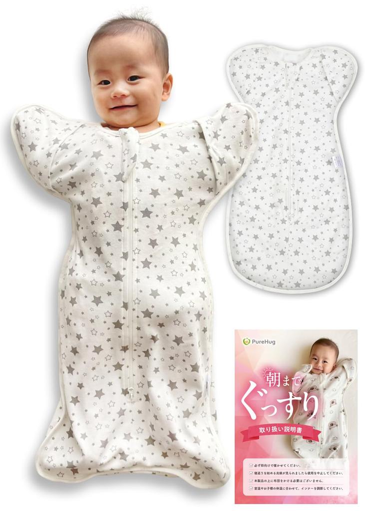 Prevents the Moro reflex and is ideal for preventing nighttime crying: The Moro reflex is a natural reaction in newborns, where they instinctively spread their arms and legs and cling to one another. However, this reaction can startle the baby and cause them to cry, or wake them up when they were about to fall asleep, causing many moms and dads to worry about the Moro reflex. PureHug gently wraps the baby's entire body, giving them the same sense of security as if they were in their mother's womb, preventing the Moro reflex and promoting quality sleep.