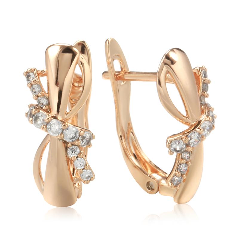 Rose Gold Color Earrings For Women Girl Fashion Bowknot Natural Zircon Drop Earring High Quality Daily Jewelry