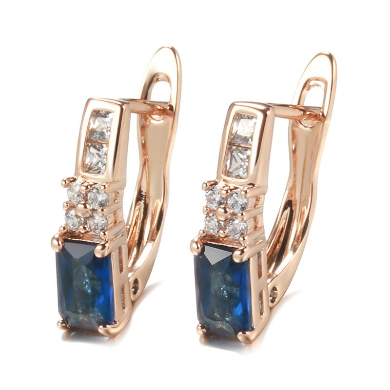 Luxury Rose Gold Bride Earring Fashion Blue Natural Zircon Drop Earring Fine Vintage Wedding Jewelry Crystal Gift