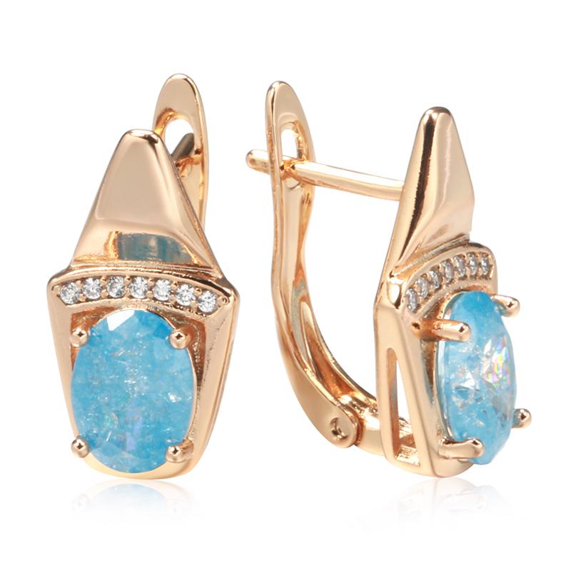 New Rose Gold Geometry Drop Earrings For Women Unusual Trendy Blue Natural Zircon Earrings Luxury Wedding Jewelry