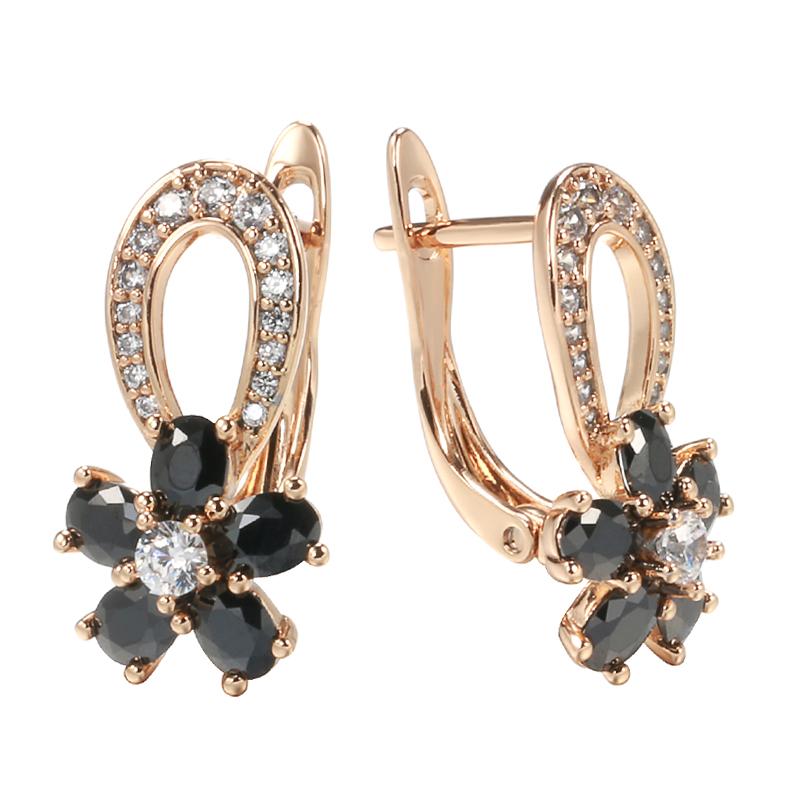 Luxury Hollow Flowers Women Earrings Black White Natural Zircon Rose Gold Drop Earrings Bridal Wedding Fashion Jewelry