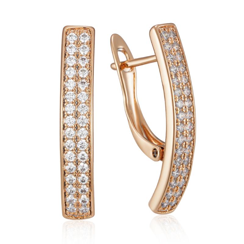Fashion Full Natural Zircon Long Square English Earrings For Women Rose Gold Color High Quality Daily Fine Jewelry