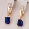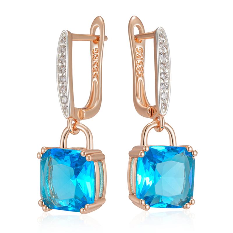 Square Blue Natural Zircon Dangle Earrings For Women Rose Gold Color Mix High Quality Daily Fine Jewelry