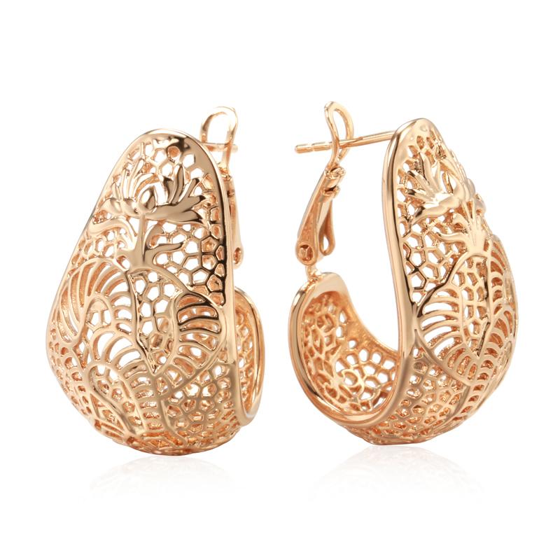New Trend Rose Gold Color Glossy Earrings For Women Fashion Creative Party Jewelry Simple Hollow Flower Drop Earrings