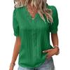 Summer New Holiday Fashion Hollow Solid Color Elegant Short-sleeved V-neck Women's Shirt