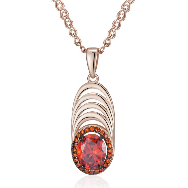 Red Natural Zircon Geometry Pendant Necklace For Women Rose Gold And Black Plating Vintage Daily Fine Jewelry